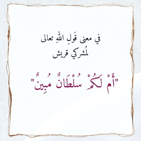 في معنى قَولِ اللهِ تعالى لمُشركي قريش “أَمْ لَكُمْ سُلْطَانٌ مُبِينٌ”