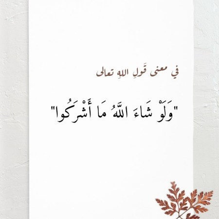 في معنى قَولِه تعالى “وَلَوْ شَاءَ اللَّهُ مَا أَشْرَكُوا”