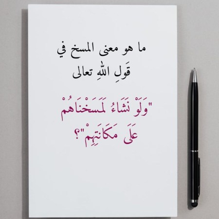 ما هو معنى المسخ في قَولِ اللهِ تعالى “وَلَوْ نَشَاءُ لَمَسَخْنَاهُمْ عَلَى مَكَانَتِهِمْ”؟