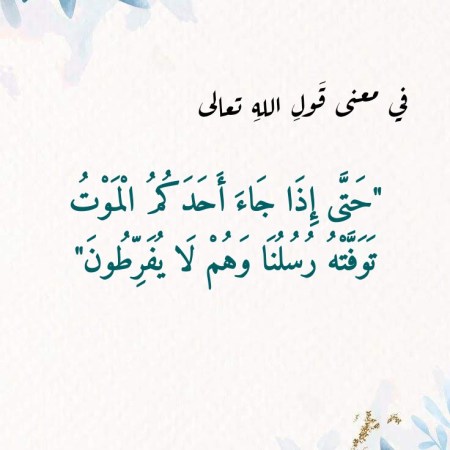 في معنى قَولِ اللهِ تعالى “حَتَّى إِذَا جَاءَ أَحَدَكُمُ الْمَوْتُ تَوَفَّتْهُ رُسُلُنَا وَهُمْ لَا يُفَرِّطُونَ”