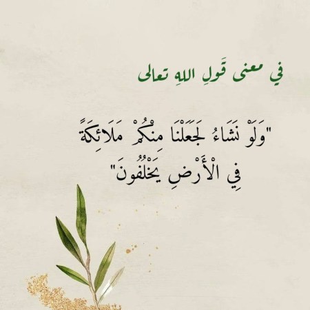 في معنى قَولِ اللهِ تعالى “وَلَوْ نَشَاءُ لَجَعَلْنَا مِنْكُمْ مَلَائِكَةً فِي الْأَرْضِ يَخْلُفُونَ”