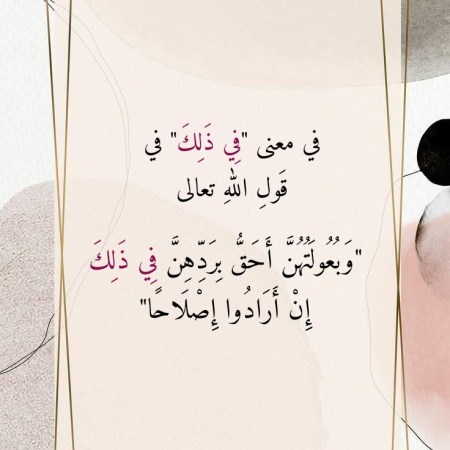 في معنى “فِي ذَلِكَ” في قَولِ اللهِ تعالى “وَبُعُولَتُهُنَّ أَحَقُّ بِرَدِّهِنَّ فِي ذَلِكَ إِنْ أَرَادُوا إِصْلَاحًا”