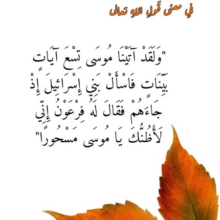 في معنى قَولِ اللهِ تعالى “وَلَقَدْ آتَيْنَا مُوسَى تِسْعَ آيَاتٍ بَيِّنَاتٍ فَاسْأَلْ بَنِي إِسْرَائِيلَ إِذْ جَاءَهُمْ فَقَالَ لَهُ فِرْعَوْنُ إِنِّي لَأَظُنُّكَ يَا مُوسَى مَسْحُورًا”