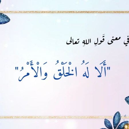 في معنى قَولِ اللهِ تعالى “أَلَا لَهُ الْخَلْقُ وَالْأَمْرُ”