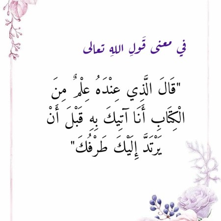 في معنى قَولِ اللهِ تعالى “قَالَ الَّذِي عِنْدَهُ عِلْمٌ مِنَ الْكِتَابِ أَنَا آتِيكَ بِهِ قَبْلَ أَنْ يَرْتَدَّ إِلَيْكَ طَرْفُكَ”