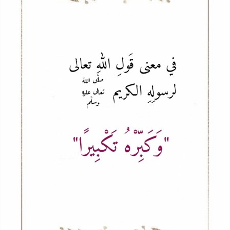 في معنى قَولِ اللهِ تعالى لرسولِهِ الكريم صلَّى اللهُ تعالى عليهِ وسلَّم “وَكَبِّرْهُ تَكْبِيرًا”