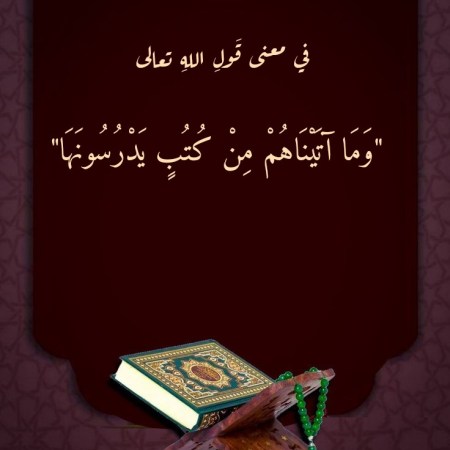 في معنى قَولِ اللهِ تعالى “وَمَا آتَيْنَاهُمْ مِنْ كُتُبٍ يَدْرُسُونَهَا”