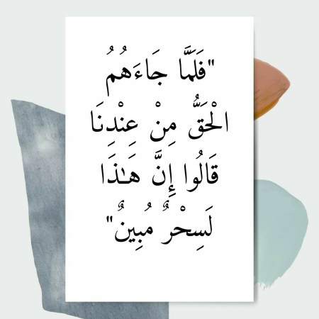 في معنى قَولِ اللهِ تعالى “فَلَمَّا جَاءَهُمُ الْحَقُّ مِنْ عِنْدِنَا قَالُوا إِنَّ هَٰذَا لَسِحْرٌ مُبِينٌ”