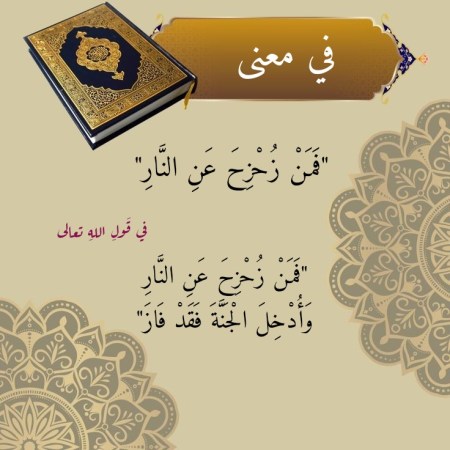في معنى “فَمَنْ زُحْزِحَ عَنِ النَّارِ” في قَولِ اللهِ تعالى “فَمَنْ زُحْزِحَ عَنِ النَّارِ وَأُدْخِلَ الْجَنَّةَ فَقَدْ فَازَ”