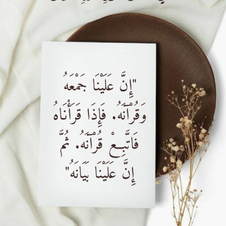 في معنى قَولِ اللهِ تعالى “إِنَّ عَلَيْنَا جَمْعَهُ وَقُرْآنَهُ. فَإِذَا قَرَأْنَاهُ فَاتَّبِعْ قُرْآنَهُ. ثُمَّ إِنَّ عَلَيْنَا بَيَانَهُ”