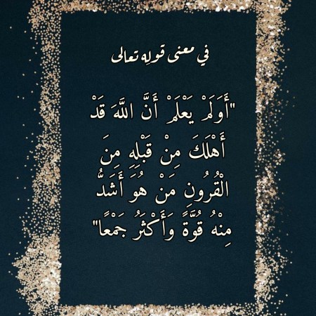 في معنى قولِه تعالى “أَوَلَمْ يَعْلَمْ أَنَّ اللَّهَ قَدْ أَهْلَكَ مِنْ قَبْلِهِ مِنَ الْقُرُونِ مَنْ هُوَ أَشَدُّ مِنْهُ قُوَّةً وَأَكْثَرُ جَمْعًا”