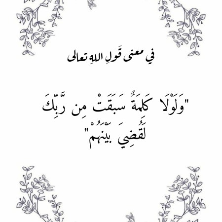 في معنى قَولِ اللهِ تعالى “وَلَوْلَا كَلِمَةٌ سَبَقَتْ مِن رَّبِّكَ لَقُضِيَ بَيْنَهُمْ”