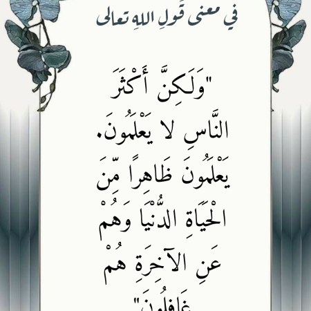 في معنى قَولِ اللهِ تعالى “وَلَكِنَّ أَكْثَرَ النَّاسِ لا يَعْلَمُونَ. يَعْلَمُونَ ظَاهِرًا مِّنَ الْحَيَاةِ الدُّنْيَا وَهُمْ عَنِ الآخِرَةِ هُمْ غَافِلُونَ”