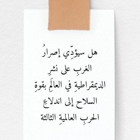 سبتمبر 11, 2023سبتمبر 13, 2023 Sufism24/7 هل سيؤدِّي إصرارُ الغربِ على نشرِ الديمقراطيةِ في العالَمِ بقوةِ السلاح إلى اندلاعِ الحربِ العالميةِ الثالثة؟