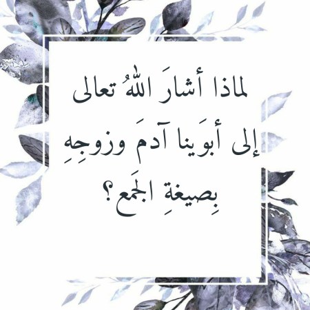 لماذا أشارَ اللهُ تعالى إلى أبوَينا آدمَ وزوجِهِ بِصيغةِ الجَمع؟
