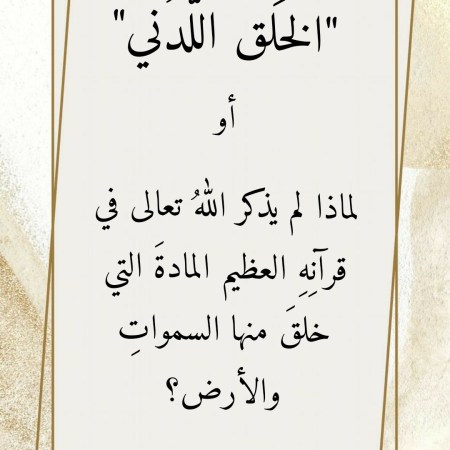 جويلية 10, 2021جويلية 11, 2021 Sufism24/7 “الخَلق اللَّدُني” أو “لماذا لم يذكر اللهُ تعالى في قرآنِهِ العظيم المادةَ التي خلقَ منها السمواتِ والأرض؟”