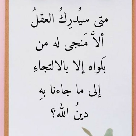 نوفمبر 16, 2021نوفمبر 16, 2021 Sufism24/7 متى سيُدرِكُ العقلُ ألاَّ مَنجى له من بَلواه إلا بالالتجاءِ إلى ما جاءنا بهِ دينُ الله؟