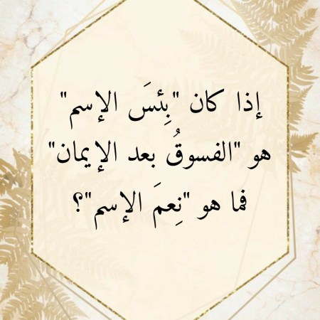 مارس 25, 2021مارس 25, 2021 Sufism24/7 إذا كان “بِئسَ الإسم” هو “الفسوقُ بعد الإيمان” فما هو “نِعمَ الإسم”؟