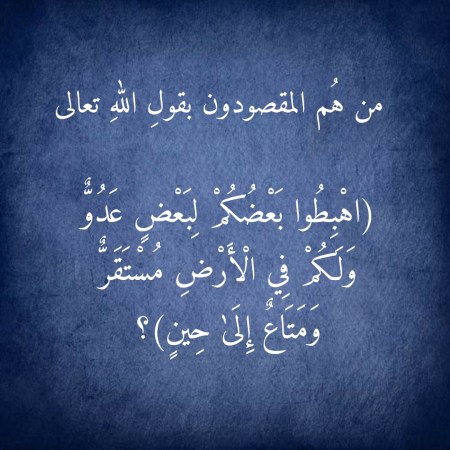 جويلية 2, 2021جويلية 3, 2021 Sufism24/7 من هُم المقصودون بقولِ اللهِ تعالى (اهْبِطُوا بَعْضُكُمْ لِبَعْضٍ عَدُوٌّ وَلَكُمْ فِي الْأَرْضِ مُسْتَقَرٌّ وَمَتَاعٌ إِلَىٰ حِينٍ)؟