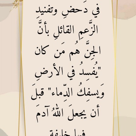 نوفمبر 6, 2021نوفمبر 6, 2021 Sufism24/7 في دَحضِ وتفنيدِ الزَّعمِ القائلِ بأنَّ الجِنَّ هُم مَن كان “يُفسِدُ في الأرضِ ويسفِكُ الدماء” قبلَ أن يجعلَ اللهُ آدمَ “في الأرضِ خليفة”