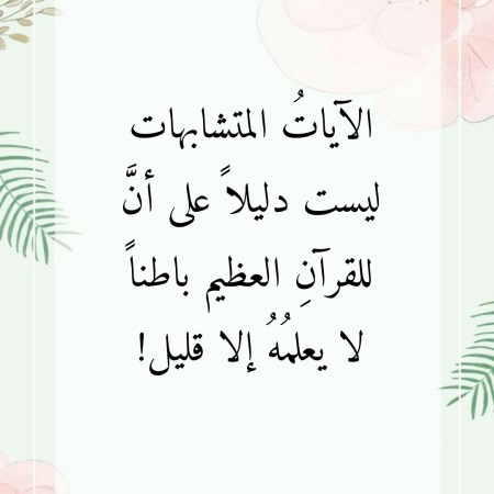 نوفمبر 21, 2021نوفمبر 21, 2021 Sufism24/7 “الآياتُ المتشابهات” ليست دليلاً على أنَّ للقرآنِ العظيم باطناً لا يعلمُهُ إلا قليل