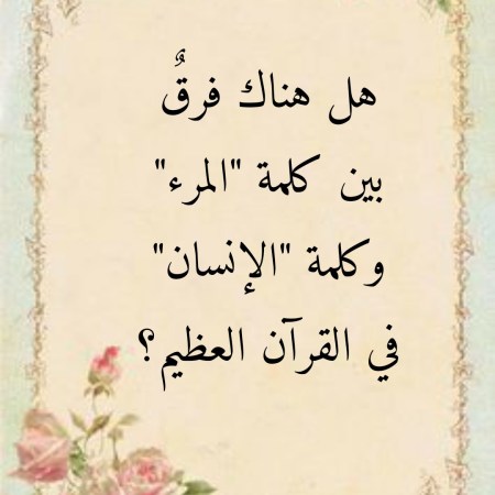 ديسمبر 18, 2021ديسمبر 18, 2021 Sufism24/7 هل هناك فرقٌ بين كلمة “المرء” وكلمة “الإنسان” في القرآن العظيم؟
