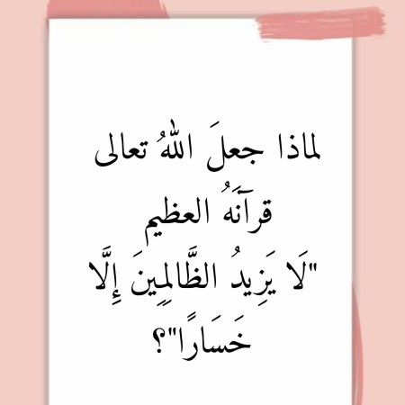 لماذا جعلَ اللهُ تعالى قرآنَهُ العظيم “لَا يَزِيدُ الظَّالِمِينَ إِلَّا خَسَارًا”؟