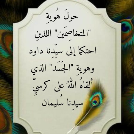 ديسمبر 13, 2022ديسمبر 13, 2022 Sufism24/7 حولَ هُويةِ “المتخاصِمَين” اللذينِ احتكما إلى سيِّدِنا داود وهويةِ “الجَسَد” الذي ألقاهُ اللهُ على كرسي سيدِنا سُليمان