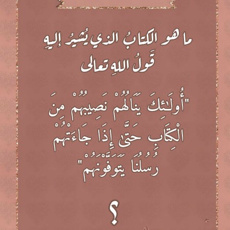 ما هو الكتابُ الذي يُشيرُ إليهِ قَولُ اللهِ تعالى “أُولَٰئِكَ يَنَالُهُمْ نَصِيبُهُمْ مِنَ الْكِتَابِ حَتَّىٰ إِذَا جَاءَتْهُمْ رُسُلُنَا يَتَوَفَّوْنَهُمْ”؟