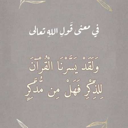 في معنى قَولِ اللهِ تعالى “وَلَقَدْ يَسَّرْنَا الْقُرْآنَ لِلذِّكْرِ فَهَلْ مِن مُّدَّكِرٍ”
