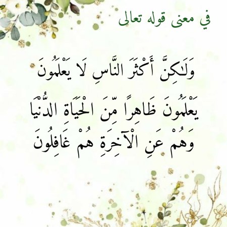 أكتوبر 1, 2021أكتوبر 2, 2021 Sufism24/7 في معنى قوله تعالى “وَلَٰكِنَّ أَكْثَرَ النَّاسِ لَا يَعْلَمُونَ. يَعْلَمُونَ ظَاهِرًا مِّنَ الْحَيَاةِ الدُّنْيَا وَهُمْ عَنِ الْآخِرَةِ هُمْ غَافِلُونَ”