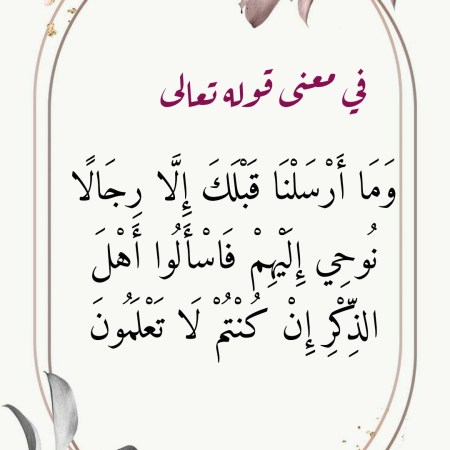 أكتوبر 13, 2021 Sufism24/7 في معنى قوله تعالى “وَمَا أَرْسَلْنَا قَبْلَكَ إِلَّا رِجَالًا نُوحِي إِلَيْهِمْ فَاسْأَلُوا أَهْلَ الذِّكْرِ إِنْ كُنْتُمْ لَا تَعْلَمُونَ”
