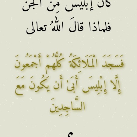 ماي 10, 2022ماي 11, 2022 Sufism24/7 كانَ إبليسُ مِن الجن فلماذا قالَ اللهُ تعالى “فَسَجَدَ الْمَلَائِكَةُ كُلُّهُمْ أَجْمَعُون. إِلَّا إِبْلِيسَ أَبَىٰ أَن يَكُونَ مَعَ السَّاجِدِينَ”؟