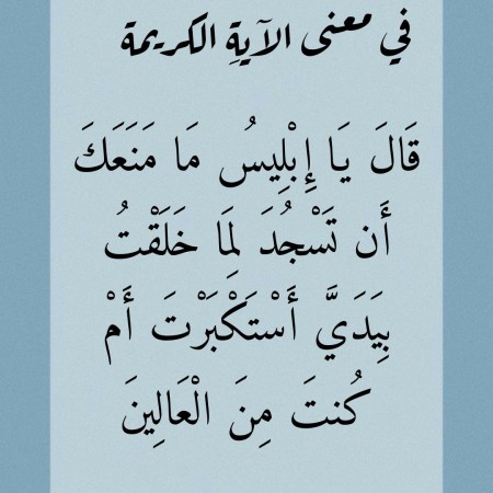 جانفي 2, 2022جانفي 2, 2022 Sufism24/7 في معنى الآيةِ الكريمة “قَالَ يَا إِبْلِيسُ مَا مَنَعَكَ أَن تَسْجُدَ لِمَا خَلَقْتُ بِيَدَيَّ أَسْتَكْبَرْتَ أَمْ كُنتَ مِنَ الْعَالِينَ”