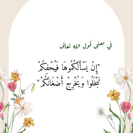 جانفي 19, 2025جانفي 19, 2025 Sufism24/7 في معنى قَولِ اللهِ تعالى “إِنْ يَسْأَلْكُمُوهَا فَيُحْفِكُمْ تَبْخَلُوا وَيُخْرِجْ أَضْغَانَكُمْ”