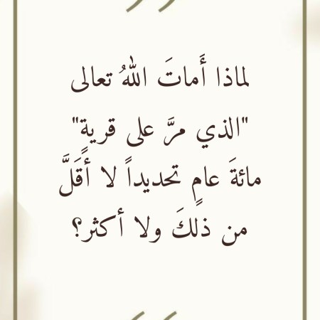 جوان 9, 2022جوان 10, 2022 Sufism24/7 لماذا أَماتَ اللهُ تعالى “الذي مرَّ على قريةٍ” مائةَ عامٍ تحديداً لا أقَلَّ من ذلكَ ولا أكثر؟