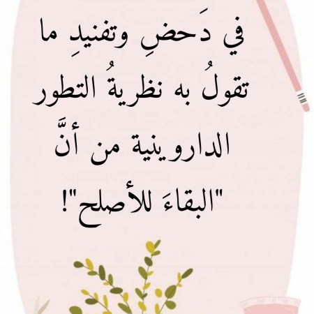 جانفي 19, 2022جانفي 19, 2022 Sufism24/7 في دَحضِ وتفنيدِ ما تقولُ به نظريةُ التطور الداروينية من أنَّ “البقاءَ للأصلح”!