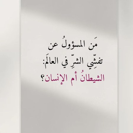 جانفي 5, 2025جانفي 17, 2025 Sufism24/7 مَن المسؤولُ عن تفشِّي الشرِّ في العالَم: الشيطانُ أم الإنسان؟