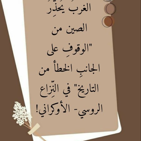 جوان 15, 2022 Sufism24/7 الغربُ يُحذِّرُ الصين من “الوقوفِ على الجانبِ الخطأ من التاريخ” في النِّزاع الروسي- الأوكراني!