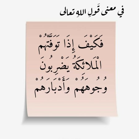 جانفي 5, 2022جانفي 5, 2022 Sufism24/7 في معنى قَولِ اللهِ تعالى “فَكَيْفَ إِذَا تَوَفَّتْهُمْ الْمَلائِكَةُ يَضْرِبُونَ وُجُوهَهُمْ وَأَدْبَارَهُمْ”