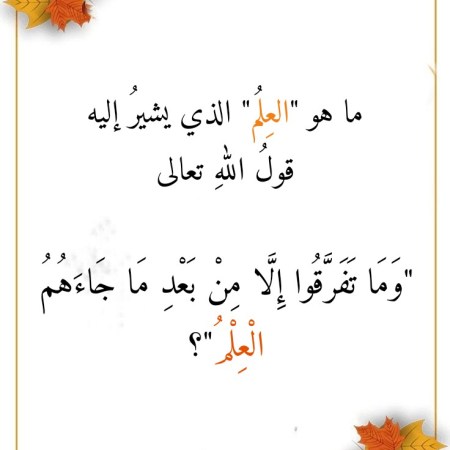 ديسمبر 9, 2024ديسمبر 28, 2024 Sufism24/7 ما هو “العِلم” الذي يشيرُ إليه قولُ اللهِ تعالى “وَمَا تَفَرَّقُوا إِلَّا مِنْ بَعْدِ مَا جَاءَهُمُ الْعِلْمُ”؟