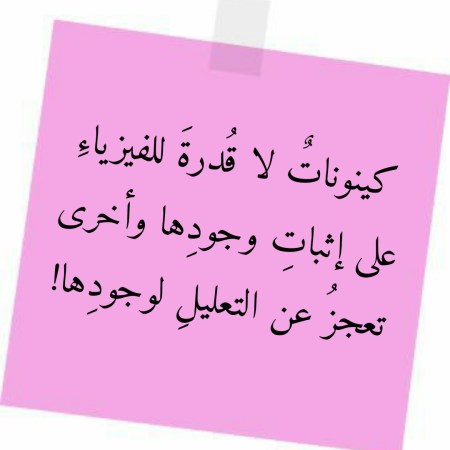 جويلية 30, 2022 Sufism24/7 كينوناتٌ لا قُدرةَ للفيزياءِ على إثباتِ وجودِها وأخرى تعجزُ عن التعليلِ لوجودِها!