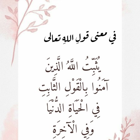 ديسمبر 25, 2021 Sufism24/7 في معنى قولِ اللهِ تعالى “يُثَبِّتُ اللَّهُ الَّذِينَ آمَنُوا بِالْقَوْلِ الثَّابِتِ فِي الْحَيَاةِ الدُّنْيَا وَفِي الْآخِرَةِ”