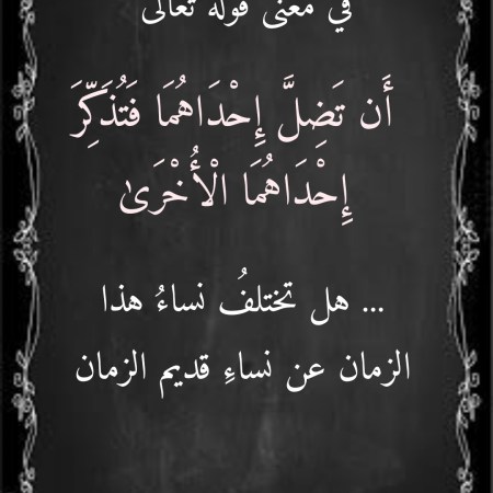 فيفري 17, 2022 Sufism24/7 في معنى قوله تعالى “أَن تَضِلَّ إِحْدَاهُمَا فَتُذَكِّرَ إِحْدَاهُمَا الْأُخْرَىٰ”… هل تختلفُ نساءُ هذا الزمان عن نساءِ قديم الزمان