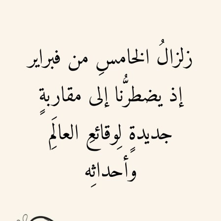 فيفري 13, 2023 Sufism24/7 زلزالُ الخامسِ من فبراير إذ يضطرُّنا إلى مقاربةٍ جديدةٍ لِوقائعِ العالَمِ وأحداثِه