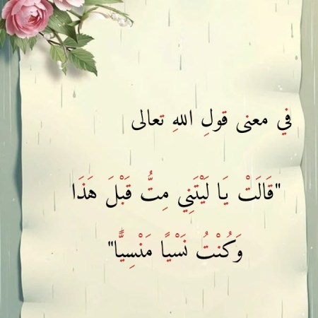 مارس 25, 2026مارس 25, 2026 Sufism24/7 في معنى قولِ اللهِ تعالى “قَالَتْ يَا لَيْتَنِي مِتُّ قَبْلَ هَذَا وَكُنْتُ نَسْيًا مَنْسِيًّا”