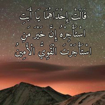 ديسمبر 2, 2021ديسمبر 2, 2021 Sufism24/7 في معنى الآيةِ الكريمة “قَالَتْ إِحْدَاهُمَا يَا أَبَتِ اسْتَأْجِرْهُ إِنَّ خَيْرَ مَنِ اسْتَأْجَرْتَ الْقَوِيُّ الْأَمِينُ”