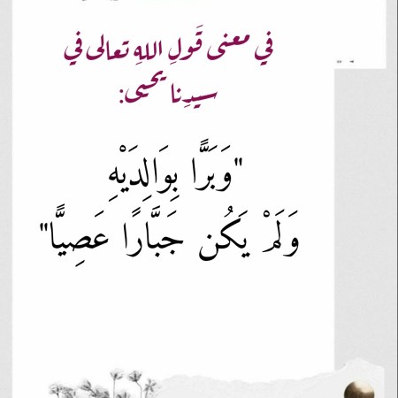 مارس 26, 2023 Sufism24/7 في معنى قَولِ اللهِ تعالى في سيدِنا يحيى: “وَبَرًّا بِوَالِدَيْهِ وَلَمْ يَكُن جَبَّارًا عَصِيًّا”