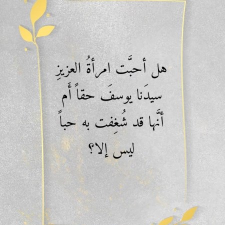 هل أحبَّت امرأةُ العزيزِ سيدَنا يوسفَ حقاً أَم أنَّها قد شُغِفت به حباً ليس إلا؟