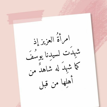 امرأةُ العزيز إذ شهِدَت لسيدِنا يوسُفَ كما شهِدَ له شاهدٌ من أهلِها من قبل